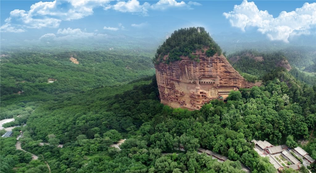 In the period following the mid-5th century, it was on the main route by which Buddhism was introduced into China. The great complex of cave temples at Mount Maiji, about 15 miles (25 km) to the southeast, became a major Buddhist centre during the Sui (581–618) and Tang dynasties. Mount Maiji is now a popular tourist destination.